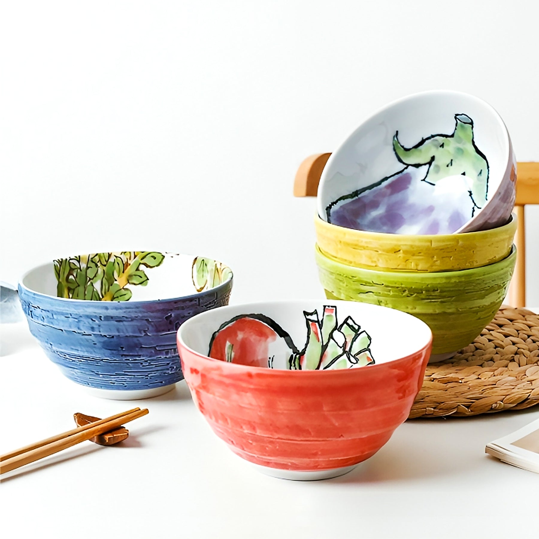 Japanese Ceramic Rice Bowl 13.5cm Daikon Blue