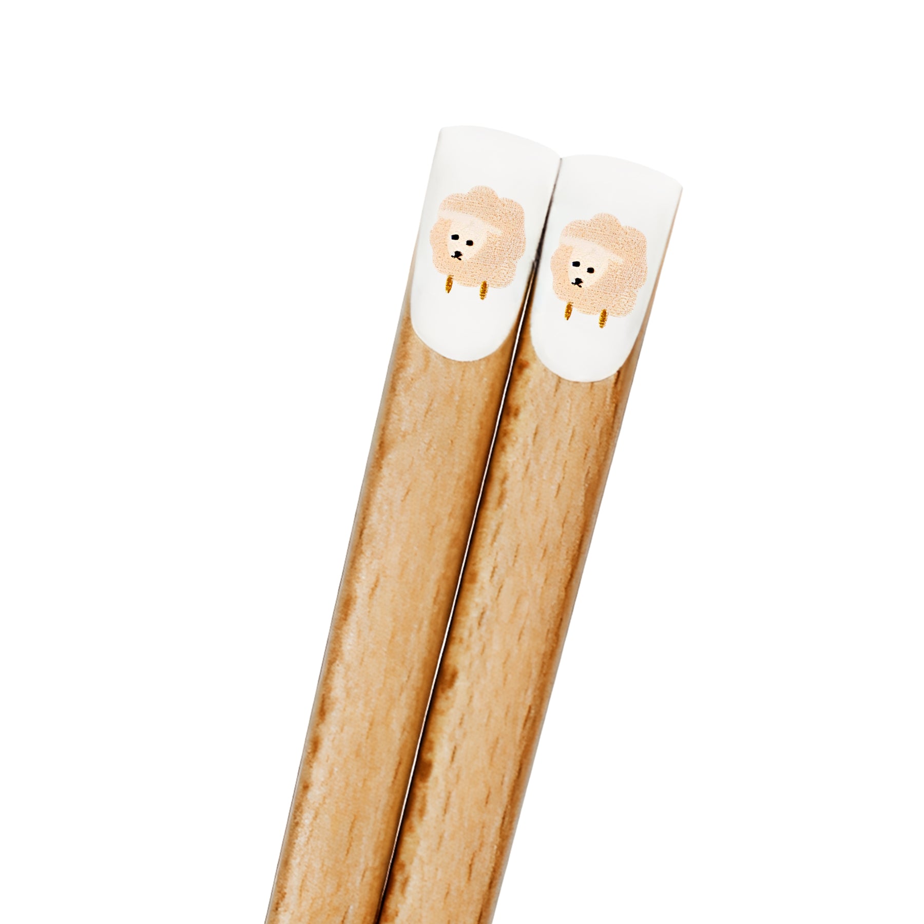 Natural Wood Chopsticks Galin Sheep 22.5cm Made In Japan